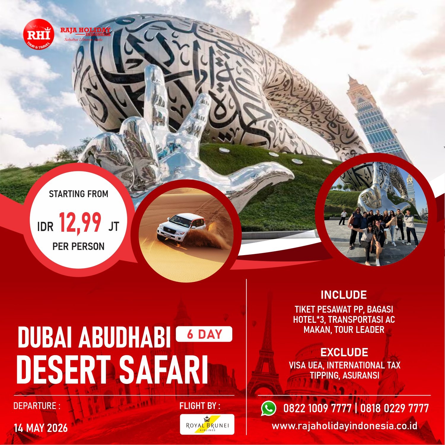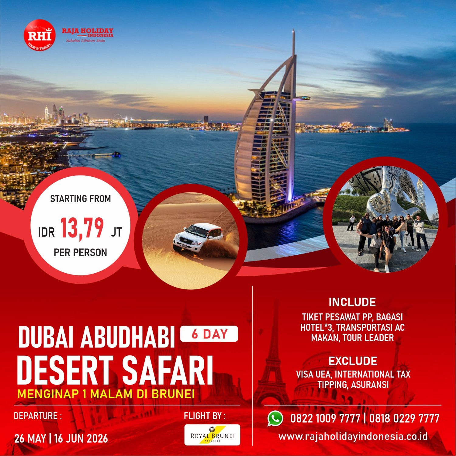 Lebaran 2026! Tour Dubai Abu Dhabi + Desert Safari & Free Brunei