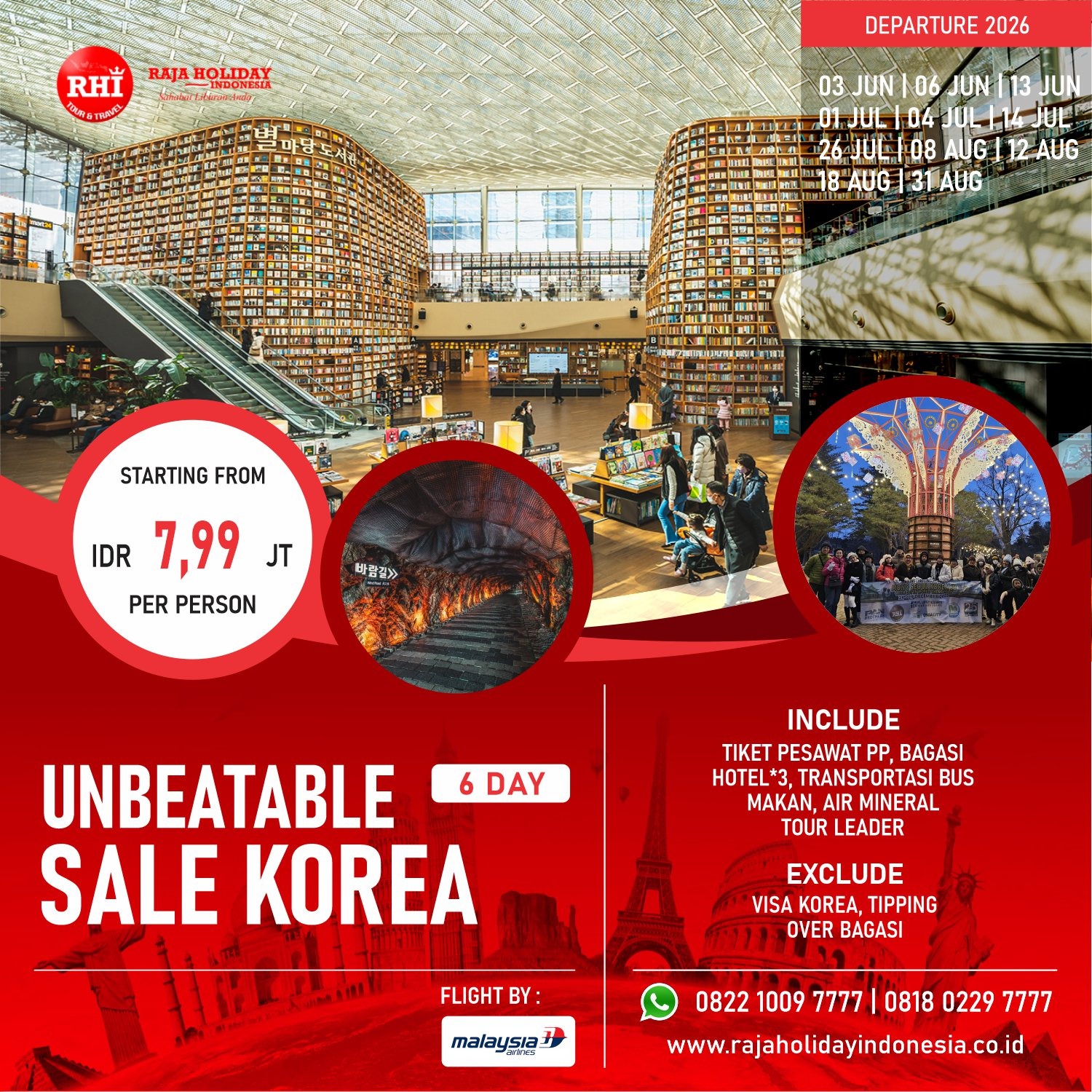 Hightlight : Paris Eiffel Tower, Arc de Triomphe, Champs-Élysées, Louvre Museum, Place de la Concorde, Seine River Cruise (optional), Brussels Grand Place, Manneken Pis, Amsterdam Zaanse Schans, Volendam, Roermond Outlet, Cologne Cathedral, Luxembourg Pont Adolphe, Strasbourg Petite France, Schaffhausen Rhinefalls, Zurich City, Mt. Titlis Cable Car, Lucerne Chapel Bridge, Lion Monument, Milan Piazza del Duomo, Milan Cathedral, Galleria Vittorio Emanuele II, Scala Theatre, Castello Sforzesco