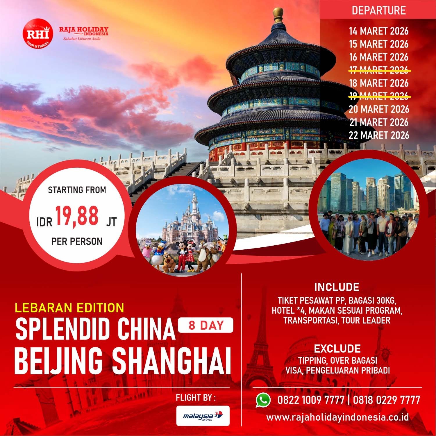 Lebaran 2026! Tour Splendid China Beijing + Shanghai Disneyland