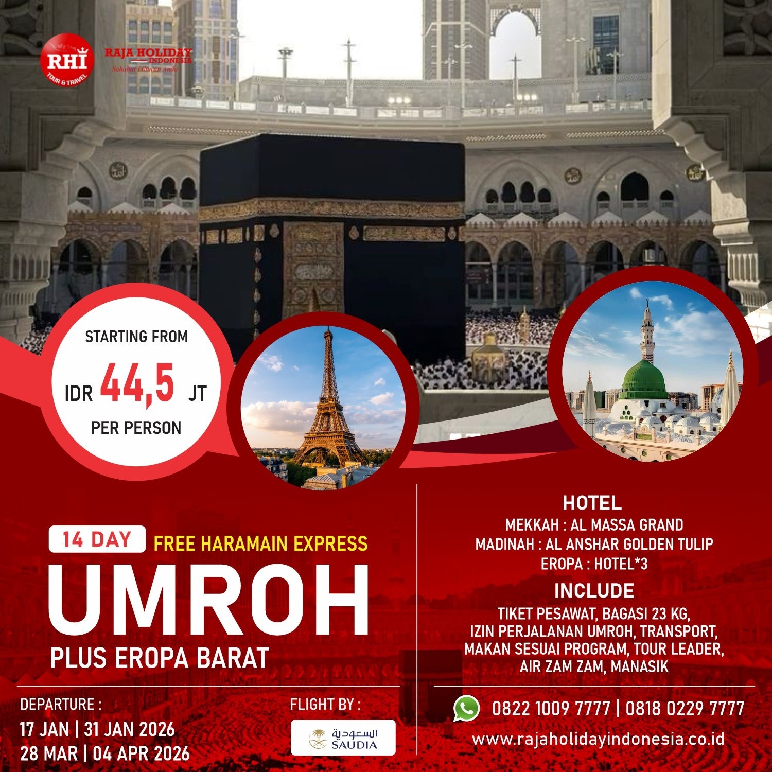 Paket Umroh Free Haramain Express + Tour Eropa Barat - 14D11N
