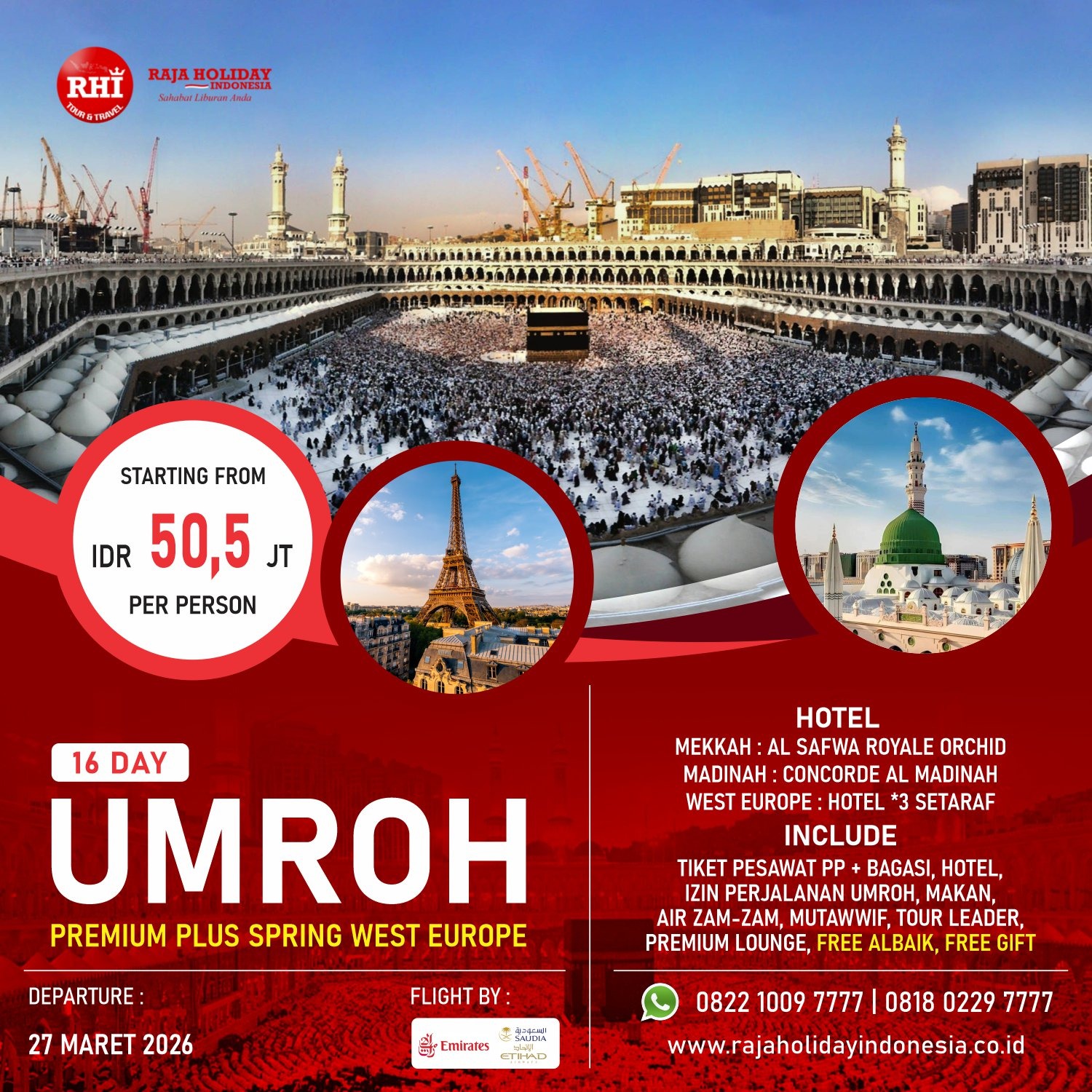 Paket Umroh Premium Free Albaik + Spring West Europe - 16D14N