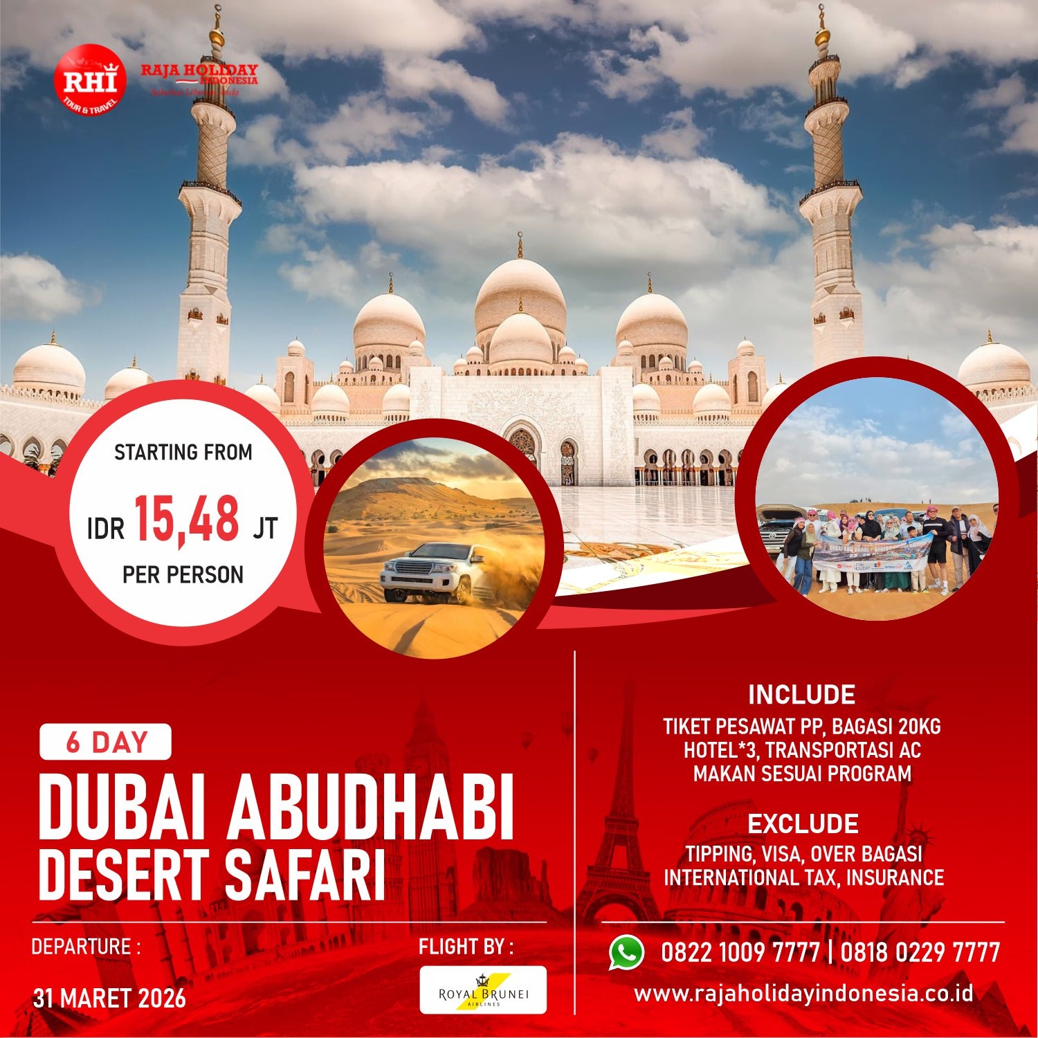 Tour Best of Dubai Abu Dhabi Desert Safari + 1 Night Brunei - 6D4N
