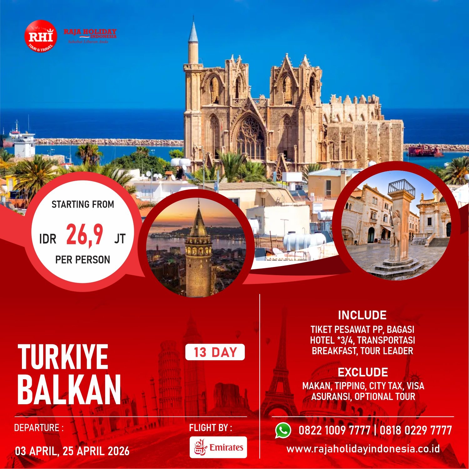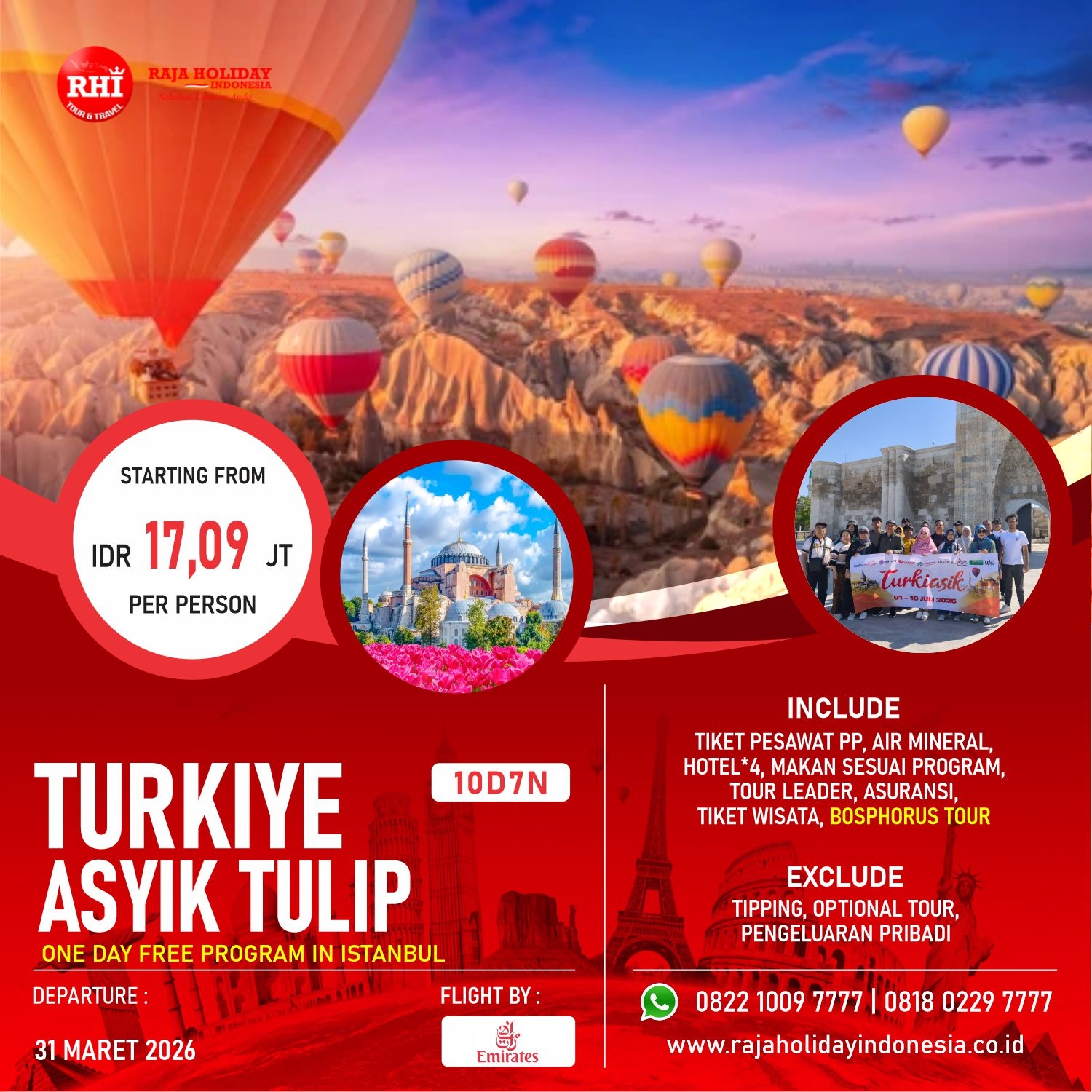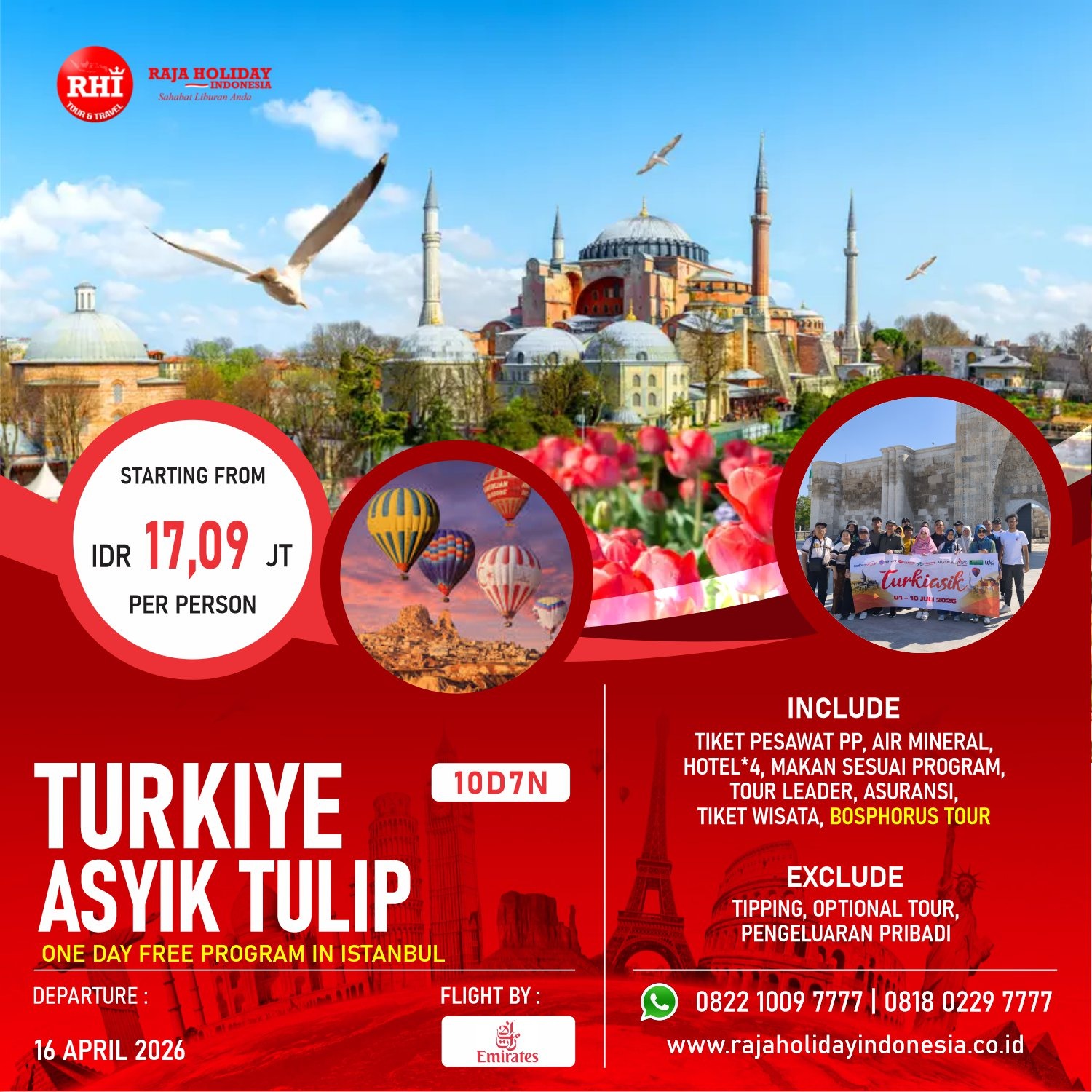 Raja Holiday Indonesia, Penyedia Jasa Tour Domestik Indonesia, Luar Negeri, Asia, Eropa & Timur Tengah. Menyediakan menyediakan Paket Tour Murah, Paket Wisata Murah, Liburan Keluarga dan Bulan Madu ke Turki, Dubai, Rusia, Malaysia, Singapore, Thailand, Vietnam, Kamboja, Korea, Jepang dan China.